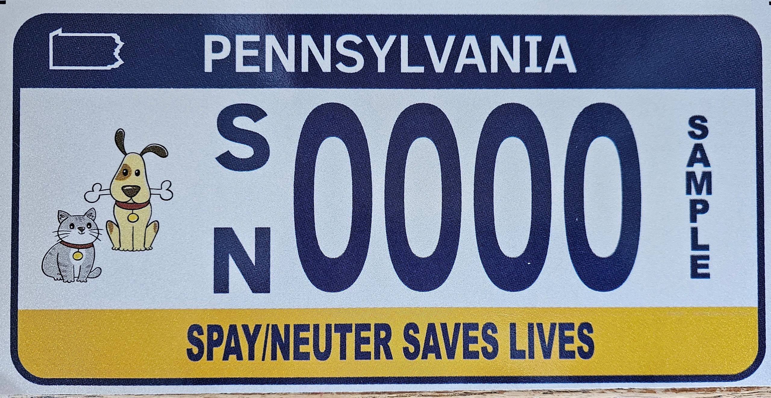 The amazing SNAP program provides low cost spay/neuters for animals in Pennsylvania. Their mission is to eliminate pet overpopulation as a cause of death, suffering, abuse, neglect, and abandonment by providing safe, low cost spay/neuter alternatives for cats and dogs. This license plate helps fund their program.